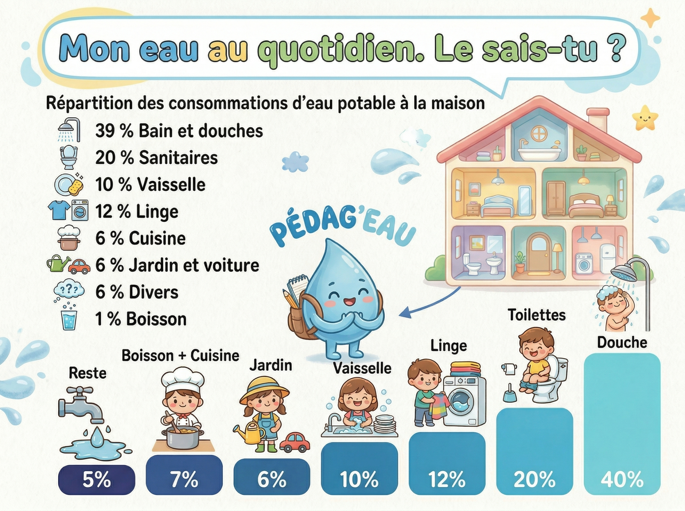 l’eau à la maison. A toi de jouer pour devenir un (e) véritable un super-héros de l’eau et de la planète !